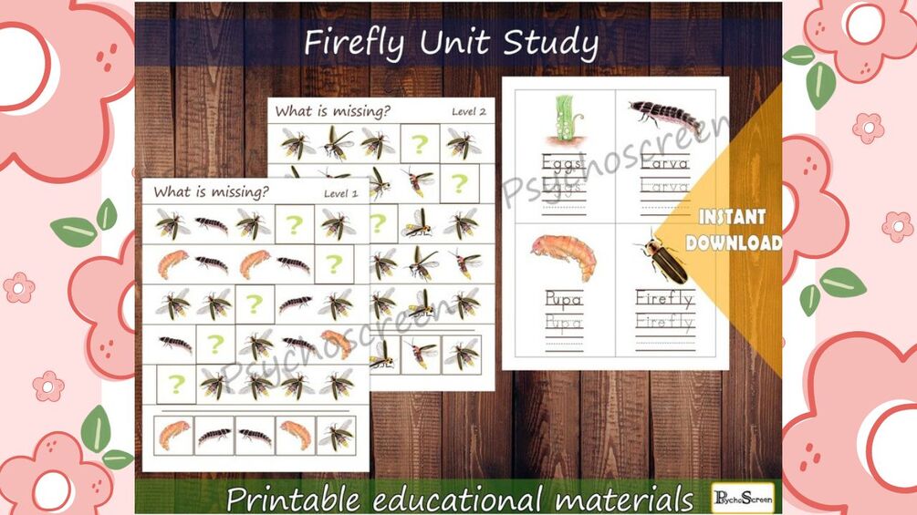 [PDF] Firefly Unit Study Home Learning Kids Printable Montessori Toddler preschool Kindergarten Classroom